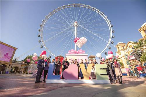 冬日暖陽(yáng),燦爛溫和。歡樂(lè)海岸PLUS,充滿熱烈、溫馨、浪漫。這里有幸福摩天輪、玫瑰廣場(chǎng)、99種語(yǔ)言“我愛你”的愛情墻、88米高時(shí)光塔、心形石頭湖畔、丘比特藝術(shù)裝置等獨(dú)一無(wú)二的浪漫地標(biāo)和氛圍。