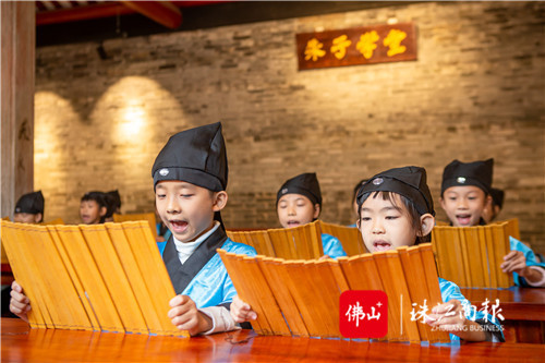 小朋友們正在朱子學(xué)堂內(nèi)朗誦詩歌。