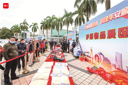 區(qū)級(jí)展現(xiàn)場(chǎng)設(shè)置了掃黑除惡成果宣傳展板、涉案物品展、特警裝備展、互動(dòng)游戲、打卡留影區(qū)等多個(gè)展區(qū)。記者看到,掃黑除惡宣傳展板以組織部署、嚴(yán)懲黑惡、綜合治理、長(zhǎng)效常治、宣傳發(fā)動(dòng)等五大版塊,全方位展示了順德區(qū)掃黑除惡專項(xiàng)斗爭(zhēng)三年工作措施及成果。