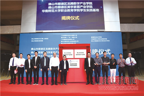 11月24日上午,順德區(qū)龍騰數(shù)字產(chǎn)業(yè)學(xué)院、順德區(qū)美學(xué)家居產(chǎn)業(yè)學(xué)院、華南師范大學(xué)職業(yè)教育學(xué)院學(xué)生實踐基地揭牌儀式在龍江職業(yè)技術(shù)學(xué)校舉行。/龍江宣辦供圖