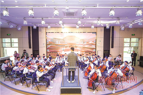 龍江外國語學(xué)校交響樂團在練習(xí)。/珠江商報記者林安迪攝
