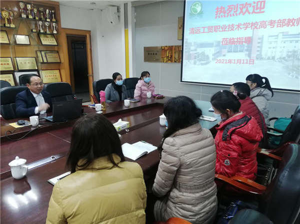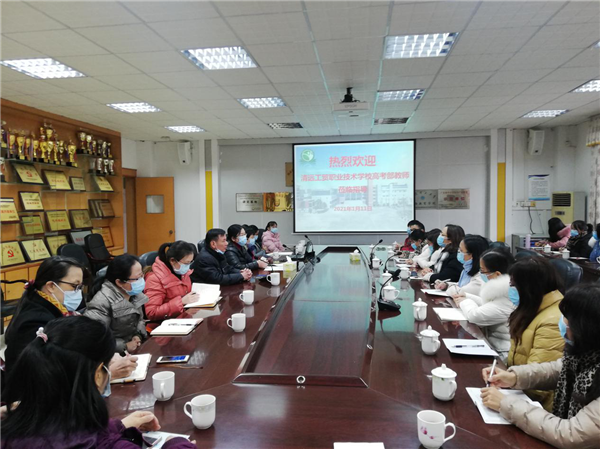 寒冷冬日遇暖流, 兄弟學校情誼深。2021年1月11日下午,清遠工貿(mào)職業(yè)技術(shù)學校高考部部長帶領(lǐng)全體高考升大班教師來到陳村職校交流高考教學工作。