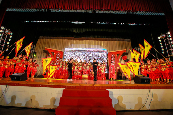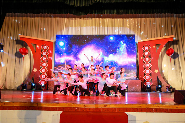 游園活動(dòng)結(jié)束后,令人翹首以盼的年度文藝匯演開始了。一段熱力四射的舞蹈串燒開場舞和歡騰喜慶的歌曲《祝福你》,拉開文藝匯演的帷幕,迅速燃爆全場。