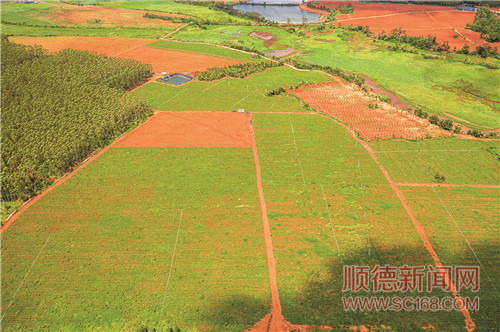 航拍陳家村與雷州市源果匯農(nóng)業(yè)科技有限公司合作共建種植面積達千余畝的楊家鎮(zhèn)番薯種植合作產(chǎn)業(yè)基地。/區(qū)扶貧辦供圖