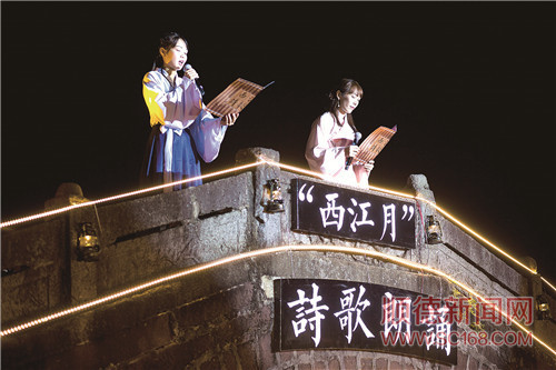 在見龍橋上舉辦詩歌朗誦會(huì),伴著朗朗月色,一首首本土原創(chuàng)詩歌作品的朗誦,為古橋的夜增添了一股詩意;