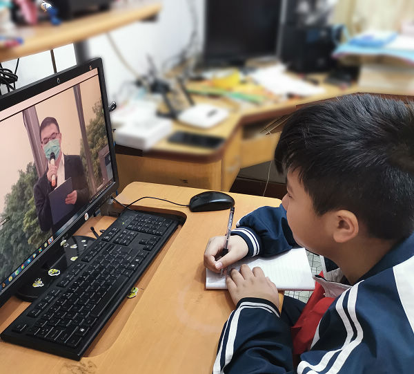 “升國旗、奏唱國歌,敬禮”,鮮艷的五星紅旗冉冉升起,奮發(fā)的少先隊員們敬著標準的隊禮,鏗鏘的國歌奏響在全校師生家里,滾燙的愛國之情在每一位心中升騰.......這一刻,我們雖身處不同地方,但我們都懷揣著一顆熾熱的赤子之心,共同祈愿能早日回歸等待了我們許久的校園!