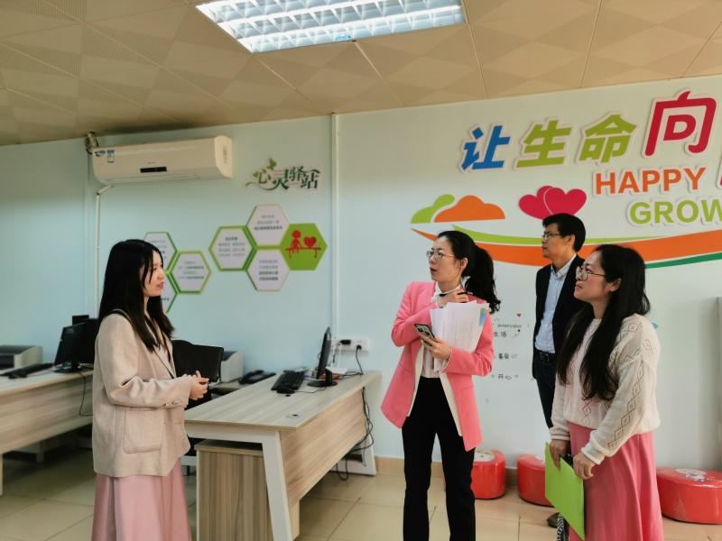 評審組實地考察“星級”心理輔導(dǎo)室建設(shè)情況。