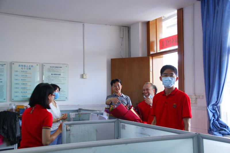 高三學(xué)子正進(jìn)行模擬考試,為了讓學(xué)子們不受打擾,張局長(zhǎng)輕聲向熊校長(zhǎng)詢(xún)問(wèn)他們的身心健康和備考狀態(tài)。 隨后,張局長(zhǎng)走入高三教師辦公室,慰問(wèn)正在忙碌的一線教師,感謝他們的辛勤付出。張局長(zhǎng)高度贊揚(yáng)了羅中教師吃苦耐勞的拼搏精神,同時(shí)勉勵(lì)大家再接再厲,再創(chuàng)佳績(jī)。 余逸主任向高三年級(jí)級(jí)長(zhǎng)蘇靜瓊老師獻(xiàn)上了鮮花,并祝愿羅中學(xué)子在2020年高考中取得豐收碩果。 在高考沖刺關(guān)鍵時(shí)期,區(qū)領(lǐng)導(dǎo)的慰問(wèn)進(jìn)一步鼓舞了高三師生的士氣。高三師生將以更高昂的斗志、更飽滿(mǎn)的狀態(tài)、更務(wù)實(shí)的態(tài)度投入到備考沖刺中。七月,我們期待再創(chuàng)高考新的輝煌!