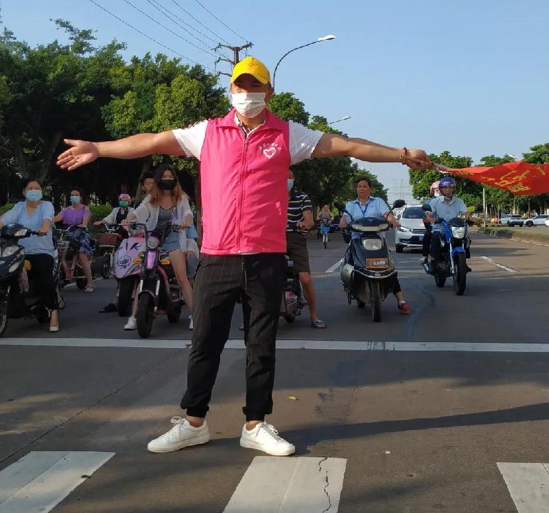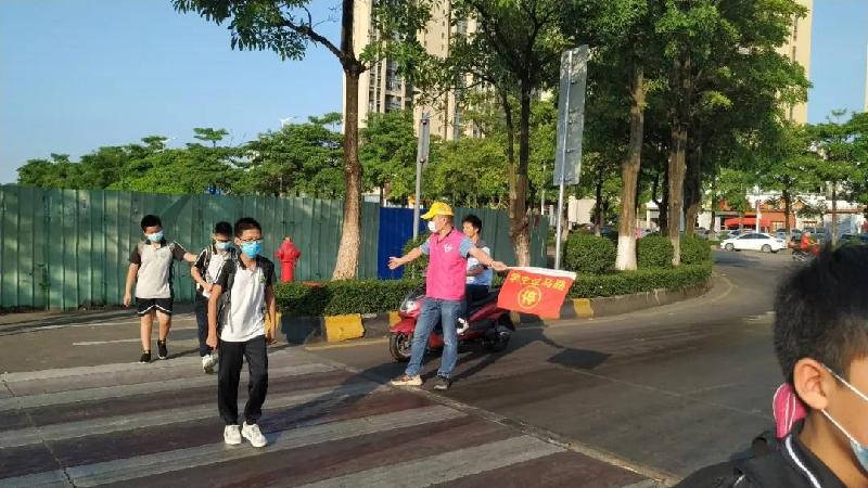 義工隊一百多人,每周五天的堅守,架鐵馬、拉雪糕桶,站在斑馬線的兩端,站在車水馬龍之間,這不是一尊肉體,而是一座城墻。最難難在盲區(qū)拐角――不聽指揮的車輛強行將孩子放下;難在城光匯景的紅綠燈處――有車輛不顧綠燈強行通過。義工朋友義無反顧,交通管理紅旗一甩起,小小的身軀立出去。守衛(wèi)著容里小學(xué)全校師生的安全。