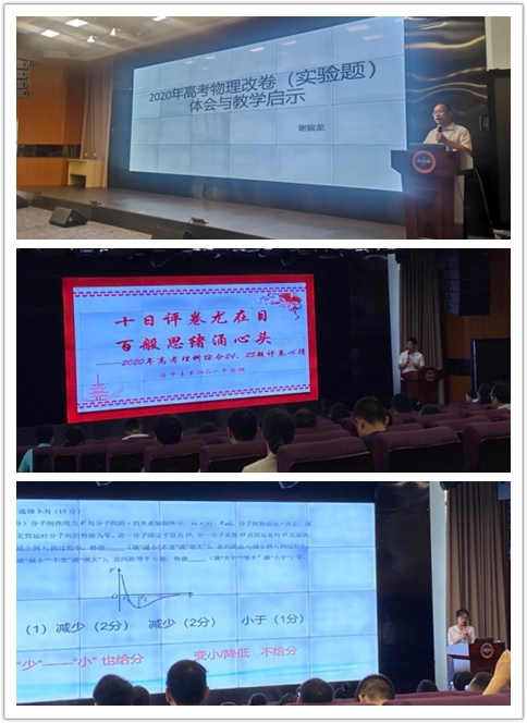 三位老師分別從2020年高考物理全國(guó)1卷的實(shí)驗(yàn)題22、23題,計(jì)算題24、25題、選修題33題的改卷情況與全體教師分享交流。從解題過(guò)程到錯(cuò)因分析,從得分情況到解題規(guī)范,從改卷心得到教學(xué)啟示,都做了非常詳盡的闡述,與會(huì)教師表示獲益匪淺。