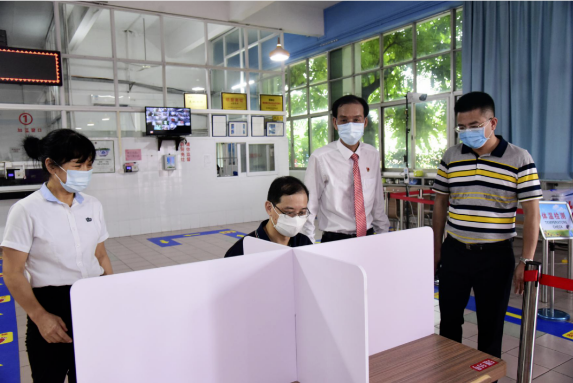 陳宇瑩書記等兩位領導對上述核驗點進行了認真細致的察看,標志是否清、消毒是否充分、記錄是否完整、制度是否上墻、人員是否到位、管理是否完善,均一一查看,細致過問。吳劍平校長及相關行政在督導檢查過程中,向兩位領導匯報學校疫情防控及開學準備工作的開展情況,并詳細回答了領導們的提問。
