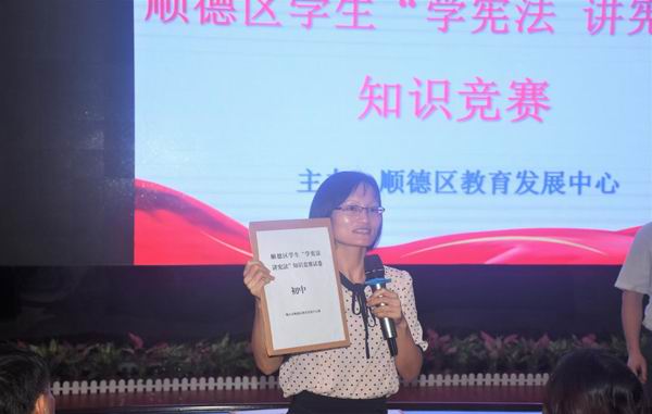 隨后,順德區(qū)教育發(fā)展中心學(xué)生成長指導(dǎo)室李高程副主任就競賽注意事項進行強調(diào),紀(jì)律監(jiān)督員廖惠芳老師就考卷的拆封規(guī)范情況進行監(jiān)督。此次知識競賽分小學(xué)、初中、高中(含中職)3個組別,采取閉卷考試形式,圍繞憲法,結(jié)合誠信規(guī)則意識、社會文明、自我保護等多個方面進行。此項競賽結(jié)束后,將按照小學(xué)、初中、高中(含中職)三個組別,分別評選出一、二、三等獎以及優(yōu)秀輔導(dǎo)老師獎。每個組別獲得第一名的選手將代表順德區(qū)參加市級知識競賽。