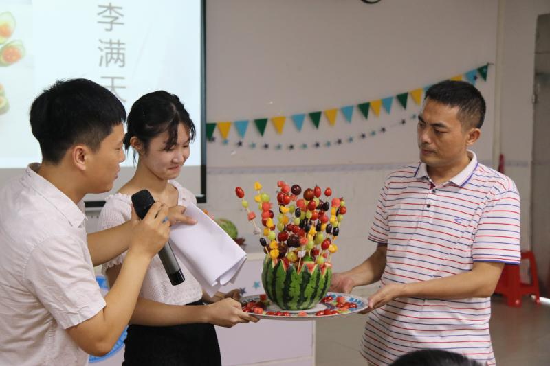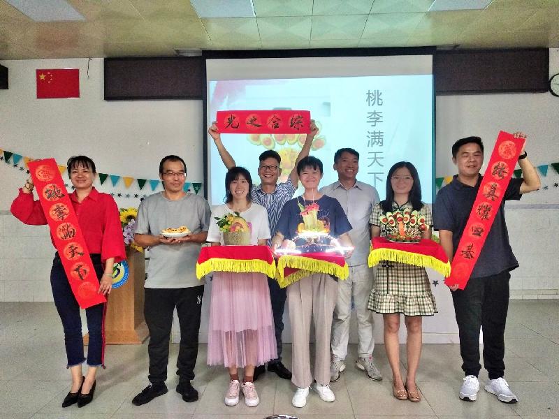 接著,在濃烈節(jié)日氛圍的熏染下,四基中學(xué)教師節(jié)活動“‘拼’出創(chuàng)意?‘果’然精彩”水果拼盤創(chuàng)意比賽正式開始。在各個科組的水果拼盤介紹環(huán)節(jié)中,只見各科組大顯神通,奇思妙想比拼設(shè)計,妙語連珠展示理念。