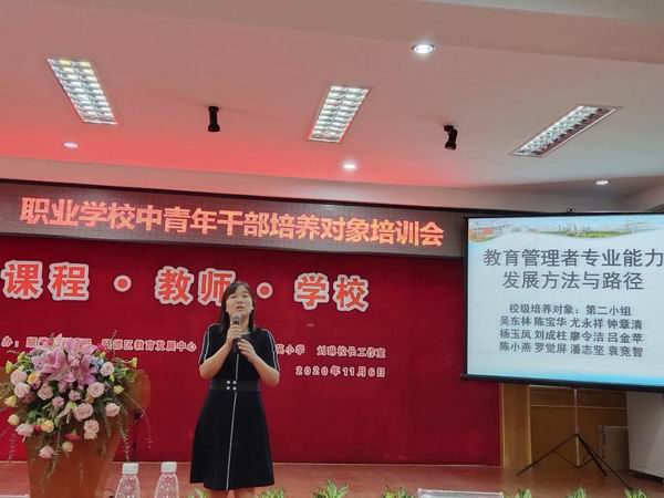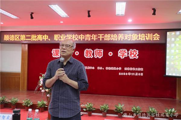 順德區(qū)容桂瑞英小學校長劉琳圍繞如何“讓課程賦予生命 讓教師長以研究”這一主題,對現(xiàn)代化學校的管理進行了詳細的闡述,劉校長“啟悟”課程的建設理念,讓在座的中青年干部深受啟發(fā)。