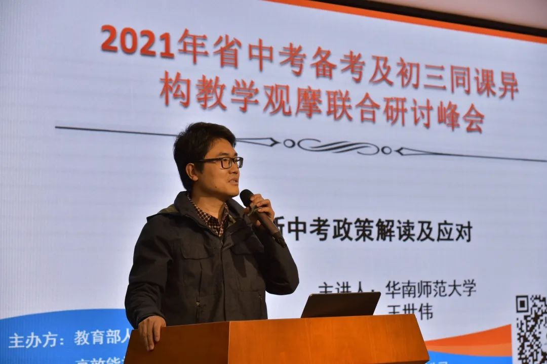 華南師范大學(xué)王世偉教授就廣東省新中考政策解讀及應(yīng)對(duì)開展主題講話。王教授表示,中學(xué)教育要重視學(xué)生的思維能力、整體認(rèn)知能力培養(yǎng)及考察學(xué)生的歸納總結(jié)能力,同時(shí),要注重實(shí)際應(yīng)用,關(guān)注社會(huì)熱點(diǎn),聯(lián)系實(shí)際等,并提出了相關(guān)的教學(xué)建議。