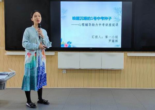 接著,三個(gè)備課組各派代表依次展開說課與模擬課堂活動(dòng)。各組圍繞初三畢業(yè)生的實(shí)際心理狀態(tài)進(jìn)行展示,目標(biāo)明確,素材豐富。說課、模擬課堂的講師團(tuán)代表們各具特色,展現(xiàn)出了良好的專業(yè)素養(yǎng)與出色的課堂駕馭能力。與會(huì)講師們常常被精彩片段吸引,甚至忍不住現(xiàn)場嘗試模仿心理保健操和心理小實(shí)驗(yàn)等。