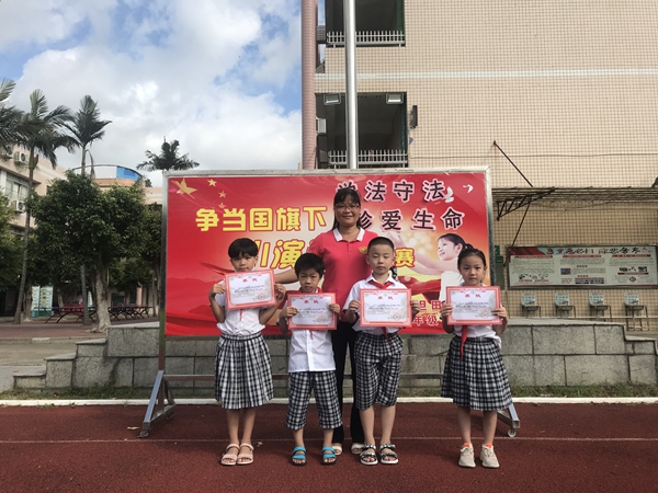 在當天活動中,先由一年級的四位學生代表:一1班林芷柔、一2班羅岱岳、 一3班張呂志軒和一4謝曉欣同學發(fā)言,給同學普及了身邊應該知道的法律知識,講述知法守法的重要性,呼吁同學們熱愛祖國,關心集體,關愛他人。同時代表全體學生表態(tài),將在生活中多關注法律知識,向老師詢問學習法律知識,學會如何用法律來保護自己,爭做一個知法守法的合格小公民。隨后,廖杏芳校長做了總結(jié)性發(fā)言,對進行國旗下講話的四位同學提出了贊揚,并呼吁同學們要樹立自尊、自律、自強的意識,增強學法知法,守法用法的能力,自覺抵制各種不良行為及違法犯罪行為的引誘和侵害,為創(chuàng)建和諧社會、和諧的校園做貢獻。