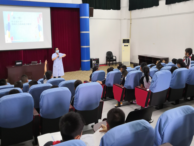 活動(dòng)中,譚醫(yī)生從“壓力與身心健康”和“如何從壓力中營(yíng)救自己”兩方面給孩子們上了一節(jié)輕松愉快的心理健康課。孩子們積極參與并發(fā)表了自己的見(jiàn)解,也將譚醫(yī)生給出的建議認(rèn)真做好筆記。