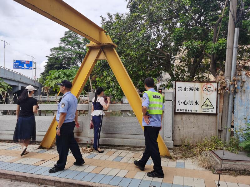 首先排查學(xué)校周邊的大小河涌、池塘、魚(yú)塘等進(jìn)行監(jiān)督檢查。重點(diǎn)檢查每一處水域是否設(shè)置有清晰的安全警示編號(hào)標(biāo)識(shí),包括水域信息、警示信息等,對(duì)巡查中發(fā)現(xiàn)沒(méi)有設(shè)置安全警示標(biāo)識(shí)的,立即作為線索上報(bào)。對(duì)發(fā)現(xiàn)中小學(xué)生玩水、市民游泳等情況,及時(shí)做好宣傳引導(dǎo)和勸離工作。