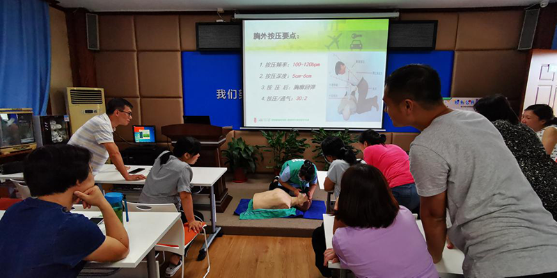 此次培訓(xùn)分為兩部分:第一部分為《從壓力中營(yíng)救自己》心理健康講座,由譚好欣醫(yī)生給師生上了一節(jié)心理健康教育課,教會(huì)我們?nèi)绾蚊鎸?duì)工作、學(xué)習(xí)和生活中來(lái)自不同的各種壓力;如何釋放各種各樣的壓力;最后如何把壓力轉(zhuǎn)變?yōu)槌晒Φ膭?dòng)力。第二部分為學(xué)習(xí)心肺復(fù)蘇知識(shí)培訓(xùn),教會(huì)老師們?cè)谏钪杏龅酵话l(fā)狀況進(jìn)行人工徒手心肺復(fù)蘇等內(nèi)容,結(jié)合實(shí)際救護(hù)技巧進(jìn)行詳細(xì)講解,并現(xiàn)場(chǎng)進(jìn)行操作展示,學(xué)員們對(duì)此表現(xiàn)出強(qiáng)烈的求知欲,在醫(yī)生的指導(dǎo)下紛紛參與實(shí)操演練,力求掌握胸外心臟按壓這一急救方法和注意事項(xiàng)。