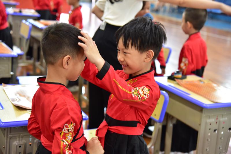 本次“開筆禮”儀式包括:“行禮儀”、“正衣冠”、“朱砂啟智”、“擊鼓鳴志”、“開筆啟蒙”、“感恩鞠躬”六大環(huán)節(jié)。