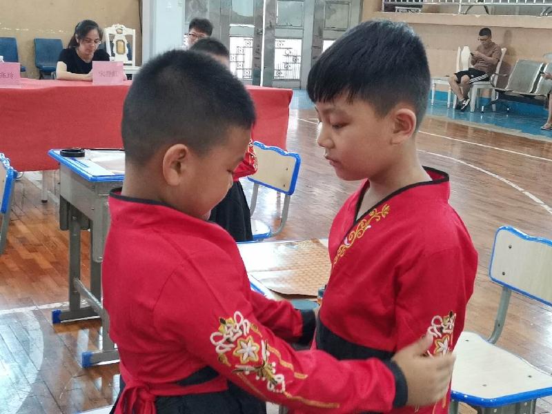 在主持人示意下,全體學生起立跟著六年級的林子琪、陳宇峰誦讀一段弟子規(guī),在朗朗讀書聲中,我們能感受到孩子們蓬勃的朝氣。在《弟子規(guī)》誦讀后,由全體學生進行拜師禮,首先,向先師孔子行鞠躬禮。先師孔子,博學知禮。是我學童,立身楷模。緊接著,向啟蒙老師行鞠躬禮。啟蒙老師,誨人不倦。育我成長,如父似母。最后,向各位師長行鞠躬禮。今我學童,求真向善。三人之行,有我?guī)熝伞?/p>