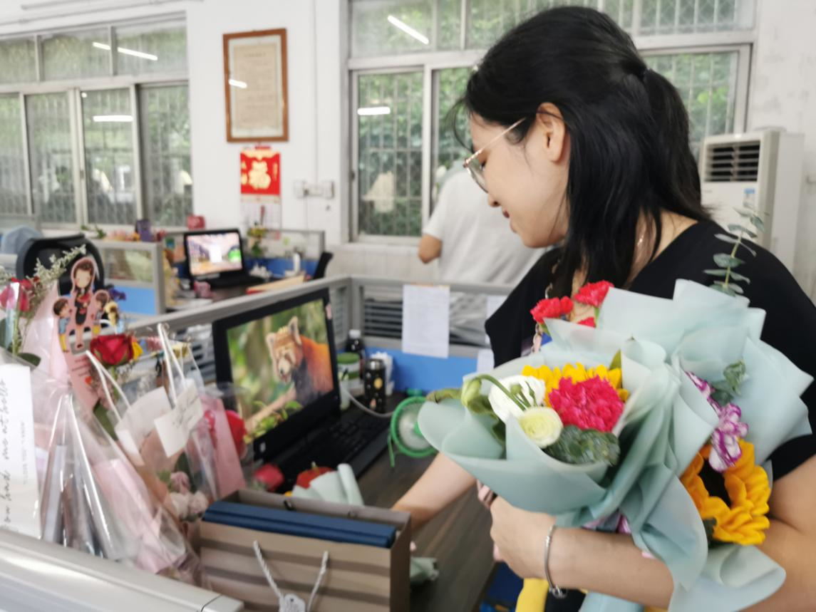 校園里孩子們捧著鮮花奔走在辦公室的身影格外引人注目,“老師,這是送您的禮物,祝您教師節(jié)快樂”一聲聲稚嫩的祝福暖進(jìn)了老師的心窩。學(xué)校還為每位老師準(zhǔn)備了一支鮮紅的玫瑰花。