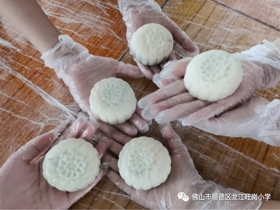 接下來(lái),在幾位家長(zhǎng)的幫助下,同學(xué)們先做好了做月餅的準(zhǔn)備――鋪好桌面、按比例分好面皮和餡,個(gè)個(gè)都懷著激動(dòng)的心情等待著做月餅。