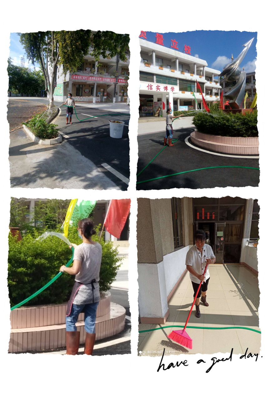 校園衛(wèi)生清潔是無聲的教育,使廣大師生的防控意識得到提高。校園衛(wèi)生清潔是安全屏障,為師生營造優(yōu)美文明的學習環(huán)境。我校將持續(xù)開展校園環(huán)境衛(wèi)生整治工作,全力以赴,“凈”待開學。