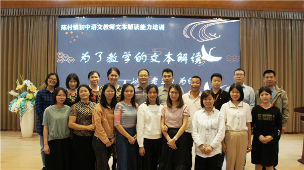 10月21日下午,此次教研活動在陳惠南紀念中學報告廳開展,由陳惠南紀念中學林涵老師主持,陳村鎮(zhèn)教育教學研究室劉俊老師、語文中心教研組組長李珊珊以及全鎮(zhèn)各初中學校語文科組的老師參加了此次專題培訓。