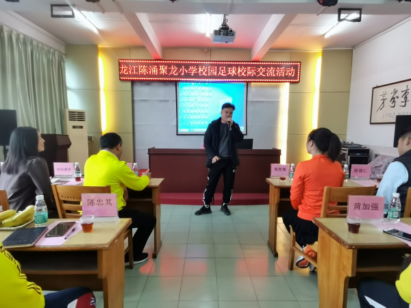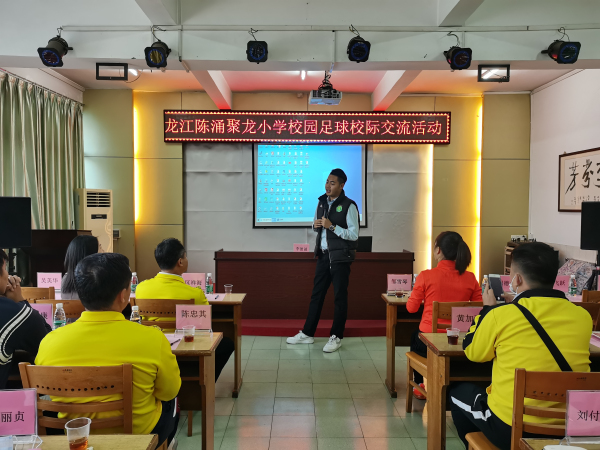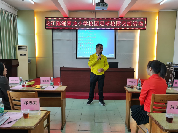 接著到交流匯報環(huán)節(jié),陳涌聚龍小學(xué)李德誠科長向來訪者介紹我校的足球特色開展情況。足球作為陳涌聚龍小學(xué)的特色教學(xué)項目,每學(xué)期聚龍小學(xué)堅持選拔、培養(yǎng)優(yōu)秀足球運動員,選送參加足球比賽都獲得優(yōu)異的成績,同時校內(nèi)還營造濃厚的足球文化,如大課間進行足球操、每年舉辦足球嘉年華活動、班際足球賽、足球文化宣傳欄展示、班級足球黑板報評比、足球手操報評比等活動都得到了學(xué)生的喜愛和家長的支持。陳涌聚龍小學(xué)鄒雪琴校長對眾兄弟學(xué)校領(lǐng)導(dǎo)的到來表示熱烈的歡迎和感謝,她指出有眾兄弟學(xué)校的交流指導(dǎo)、經(jīng)驗的借鑒,聚龍小學(xué)的足球項目會有新的突破和發(fā)展!最后,各兄弟學(xué)校展開積極的交流討論,探討如何更進一步推進學(xué)校特色體育項目的發(fā)展。