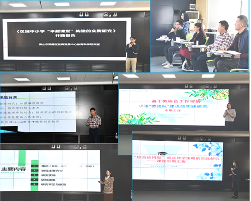 沙龍活動(dòng)主要采取“自我陳述”、“集思廣益”和“專家點(diǎn)評(píng)”三個(gè)形式進(jìn)行,共有鄧秋萍老師《新時(shí)代教師專業(yè)化發(fā)展背景下的中小學(xué)教師科研素養(yǎng)提升研究》、陳輝霞副主任《初中語文“綜合應(yīng)用型”閱讀教學(xué)策略的實(shí)踐研究》和林雪玲老師《基于教研員工作坊的小語“微團(tuán)隊(duì)”建設(shè)的實(shí)踐研究》3項(xiàng)課題的中期成果分享;有劉良欣老師《基于創(chuàng)客教育理念的中小學(xué)編程教學(xué)的探索與實(shí)踐》和許莎莎老師《核心素養(yǎng)下高中英語教學(xué)設(shè)計(jì)與實(shí)踐》2項(xiàng)課題的結(jié)題鑒定匯報(bào);還有1項(xiàng)由教科室牽頭負(fù)責(zé)的區(qū)重點(diǎn)委托項(xiàng)目《區(qū)域中小學(xué)“卓越課堂”構(gòu)建的實(shí)踐研究》開題論證。