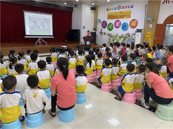 中班級長根據(jù)幼兒年齡特點(diǎn),利用多媒體課件、圖片、故事、兒歌等形式,讓幼兒了解易發(fā)生溺水事故的危險(xiǎn)地帶,分析如何避免溺水、如何自救的相關(guān)安全知識。其次,結(jié)合實(shí)際情況創(chuàng)設(shè)情境進(jìn)行求救、互救的防溺水實(shí)踐演練,保健醫(yī)生現(xiàn)場示范了溺水施救、人工呼吸、心肺復(fù)蘇等動作要領(lǐng)。最后,級長做了防溺水應(yīng)急演練總結(jié)性發(fā)言,讓幼兒明白了不能在沒有家人陪同的情況下擅自游泳,懂得珍愛生命的意義。