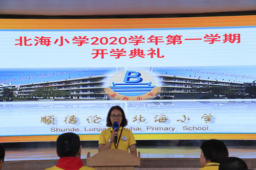 離離暑云散,裊裊秋風(fēng)起。號角已吹響,夢想正啟航。2020年9月1日上午,北海小學(xué)師生進(jìn)行了線下與釘釘直播相結(jié)合的別樣的開學(xué)典禮。開學(xué)典禮由德育處梁淑玲主任主持。