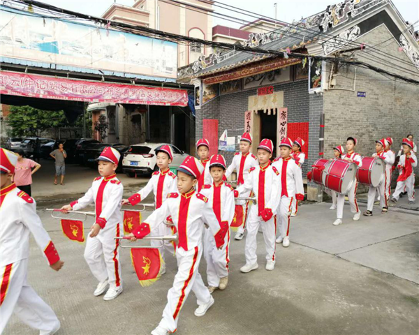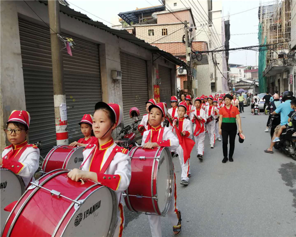 荔村小學(xué)儀仗隊(duì)跟隨荔村村委領(lǐng)導(dǎo)