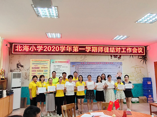2020年9月11日,北海小學(xué)全體“青藍(lán)工程”結(jié)對(duì)師徒在會(huì)議室召開本學(xué)年第一學(xué)期師徒結(jié)對(duì)工作會(huì)議。本次會(huì)議由馮汝佳主任主持,他鼓勵(lì)每位徒弟都積極向師傅學(xué)習(xí),師傅們也要不吝賜教,讓徒弟們少走彎路。