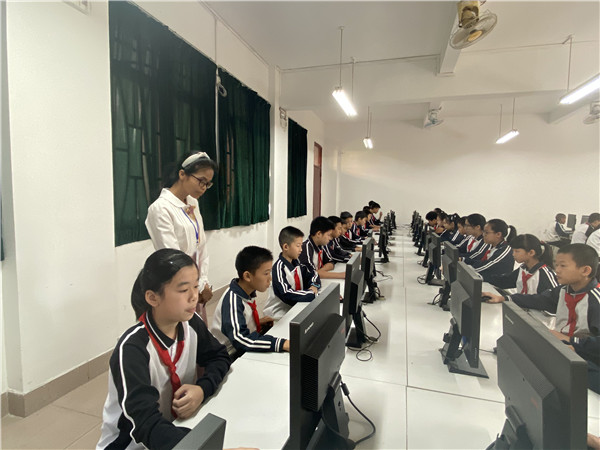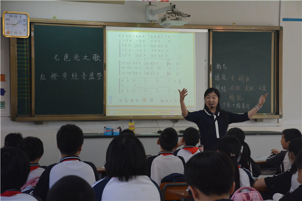 首先,評估專家“推門”深入課堂聽課,隨機聽取了語文、數(shù)學(xué)、音樂等課堂教學(xué),深入了解教師教學(xué)和學(xué)生課堂學(xué)習的開展情況。語文課上,梁健欣老師結(jié)合學(xué)?!皩W(xué)導(dǎo)練”互助教學(xué)模式展示小組互助學(xué)習,充分發(fā)揮學(xué)生的學(xué)習主體性,創(chuàng)設(shè)以生為主的互助課堂;數(shù)學(xué)課上,張綺雯老師創(chuàng)設(shè)精彩的足球比賽情境,放手讓學(xué)生以小組為單位進行探究、討論、展示,充分展示了“學(xué)導(dǎo)練”互助教學(xué)課堂;音樂課上,肖曉虹老師引導(dǎo)學(xué)生圍繞“彩虹”的特點,通過猜謎語、七色光的描述、伴唱、二聲部的演唱等環(huán)節(jié),與學(xué)生們共同演唱了“七色光之歌”,滲透積極向上的陽光教育,體現(xiàn)了奮揚學(xué)?!白屆恳粋€生命都沐浴陽光”的辦學(xué)理念。教師的循循善誘,活躍的課堂氣氛、學(xué)生們自信而大方的表現(xiàn),給評估組專家留下了深刻的印象。