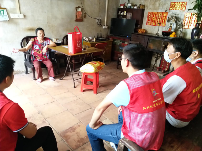 活動當(dāng)天,三位黨員教師早早來到江義村委,在江義村委組織帶領(lǐng)下,他們扛著大米等慰問品來到江義村幾戶獨居老人家中,黨員們圍著老人噓寒問暖,陪老人聊天、講笑話,老人們對大家的到訪非常高興,在與老人的交流過程中,黨員們還詳細(xì)詢問了老人的身體狀況以及生活情況,了解他們生活上遇到的困難和難處,設(shè)法幫助解決。