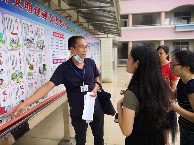 8月13日下午,勒流街道黨工委書記王光、宣傳文體局副局長郭永添同志以及相關(guān)單位領(lǐng)導,在教育局常務(wù)副局長王家倫同志的陪同下蒞臨我校對創(chuàng)文工作進行視察。