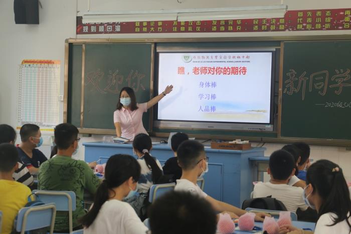 走進教室,早有正副班主任滿臉笑意的迎上來,迎面而見的是整齊的桌椅,黑板上老師們用心布置的歡迎詞。學(xué)校還精心地在每個座位上準備了蘋果,祝福學(xué)子們平安健康。