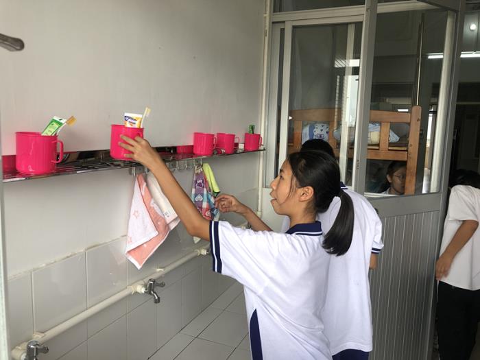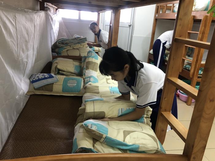 下午,同學(xué)們正式進行內(nèi)務(wù)培訓(xùn)和隊列訓(xùn)練。內(nèi)部培訓(xùn)中,生活老師認真耐心地教新同學(xué)整理好內(nèi)務(wù)的方法和技巧。為了培訓(xùn)達到更快更好的效果,各班男女生配備了內(nèi)務(wù)小老師幫忙。
