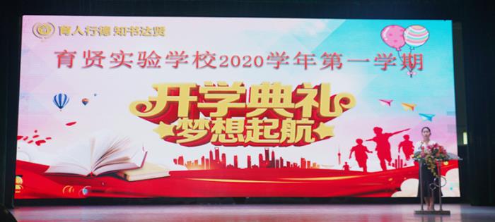 開學典禮上,濮文磊校長以《乘風破浪與祖國和時代共成長》為主題作新學期致辭。首先對新加入育賢大家庭的老師和同學表示熱烈的歡迎,回顧了上學期教育教學工作取得的喜人成績。同時對全體學生寄語殷切希望:一、胸懷祖國,做時代的奮進者”。二、心懷夢想,做時代的開拓者。借助疫情期間的一張火爆的網(wǎng)絡圖片,寄語同學們心懷夢想,并成為我們?yōu)橹床膭恿?,用求真務實的干勁筑夢起航。三、心存感恩,做時代的奉獻者。他希望每一位師生都能以滿腔的熱情、高度的責任感、昂揚的精神狀態(tài),投入到新學期的工作、學習中去,用今天的努力澆筑明天的輝煌,勇做走在時代的奮進者、開拓者、奉獻者,在新的征程中譜寫新篇章。
