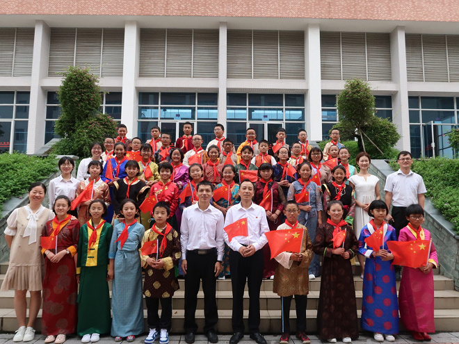 2020年10月1日上午,勒流街道黨工委書(shū)記王光同志來(lái)到江義中學(xué), 與西藏班的孩子們一同升起國(guó)旗,江義中學(xué)校長(zhǎng)胡和秋等學(xué)校領(lǐng)導(dǎo)和西藏班教師一同參加。