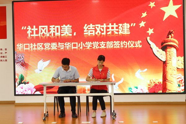 下午,在華口社區(qū)黨群服務(wù)中心,舉行華口社區(qū)黨委與華口小學(xué)黨支部的黨建結(jié)對(duì)儀式。華口社區(qū)書(shū)記黃活柏表示,希望通過(guò)通過(guò)結(jié)對(duì)共建,使雙方黨組織互相交流,互相學(xué)習(xí),并且能夠形成合力共同做好社區(qū)服務(wù)的工作。