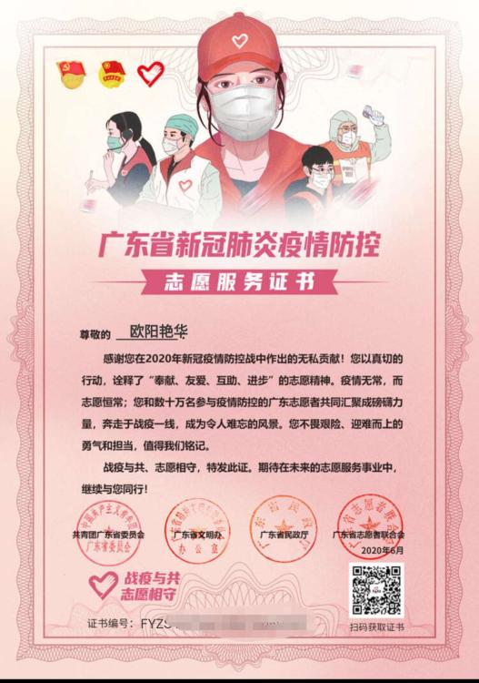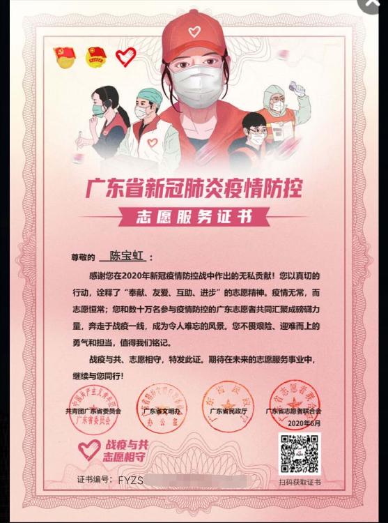 致敬:容桂小學(xué)志愿者,您的廣東省新冠肺炎疫情防控志愿服務(wù)證書來啦