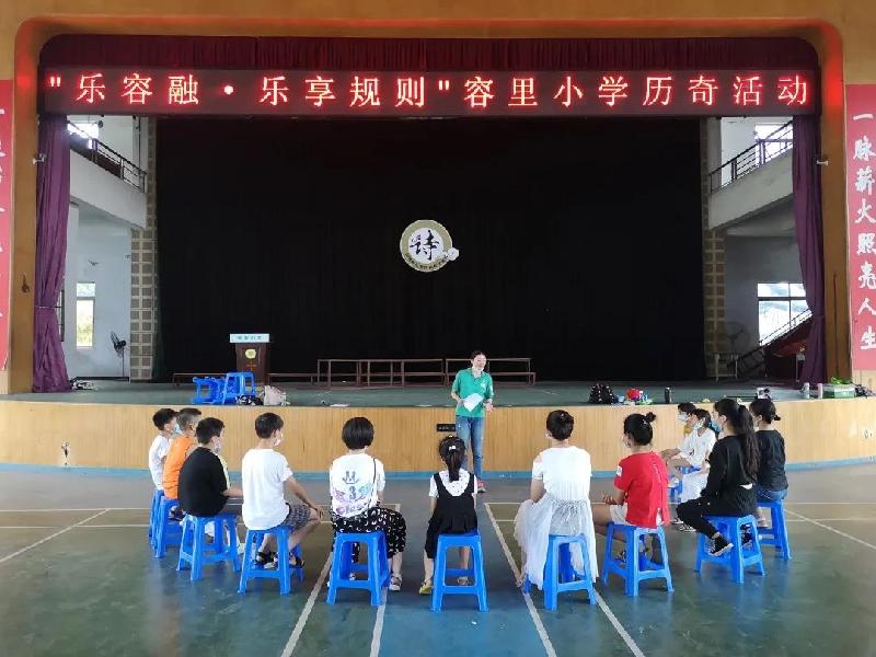 7月4日,順德啟創(chuàng)“樂?容?融”新市民子女成長支援計劃項目社工在容里小學禮堂,為學校16名新市民子女開展了“樂?容?融”?樂享規(guī)則歷奇活動。社工采用歷奇輔導的手法,提高參加者遵守規(guī)則的意識,包括:尊重他人、禮貌待人、學會有效且理性的溝通以及了解等待的重要性。