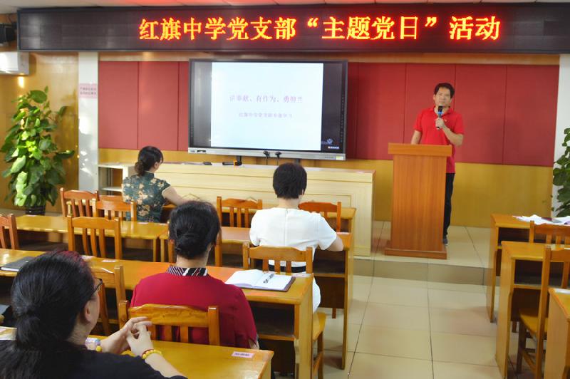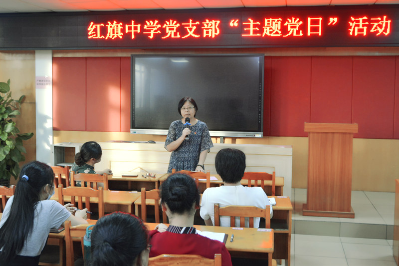 活動在雄壯的國歌聲中拉開了序幕。隨后,紅旗中學(xué)黨支部書記陳亞玲同志帶領(lǐng)支部全體黨員重溫入黨誓詞,感悟黨的使命,進(jìn)一步強(qiáng)化初心和責(zé)任擔(dān)當(dāng)。首先表彰了2020年上半年在教育教學(xué)、創(chuàng)先爭優(yōu)、防疫抗疫工作中表現(xiàn)突出的黨員干部,并進(jìn)行了現(xiàn)場頒獎。