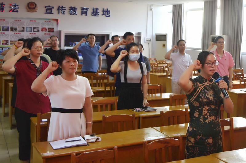今年是中國共產(chǎn)黨成立99周年, 7月7日,容桂紅旗中學(xué)開展了“重溫入黨誓詞 牢記育人使命”主題黨日活動。學(xué)校全體黨員、入黨積極分子34人參加。