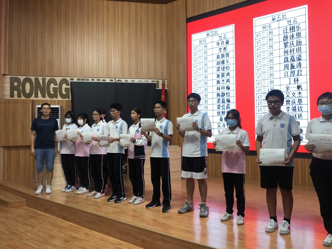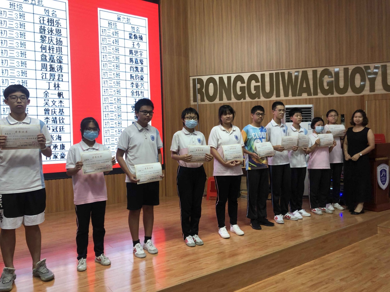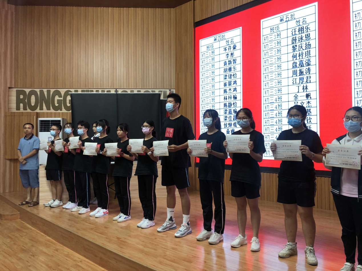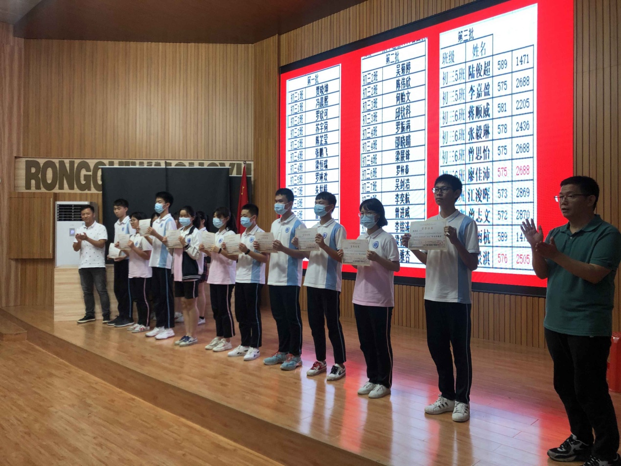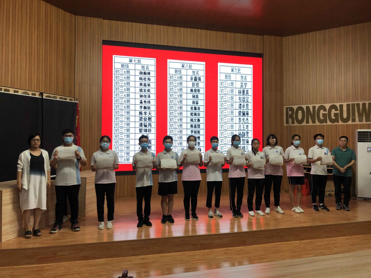 7月1日下午,容外初三年級在電教館隆重召開了優(yōu)秀學(xué)生表彰大會,對順德區(qū)模擬考試中成績優(yōu)異及進(jìn)步明顯的學(xué)生進(jìn)行頒獎。這既是對優(yōu)秀學(xué)生代表學(xué)習(xí)成果的肯定,也為其他同學(xué)樹立了優(yōu)秀的榜樣。在距離中考僅剩的20天里,激勵全體學(xué)生努力拼搏,再創(chuàng)佳績!