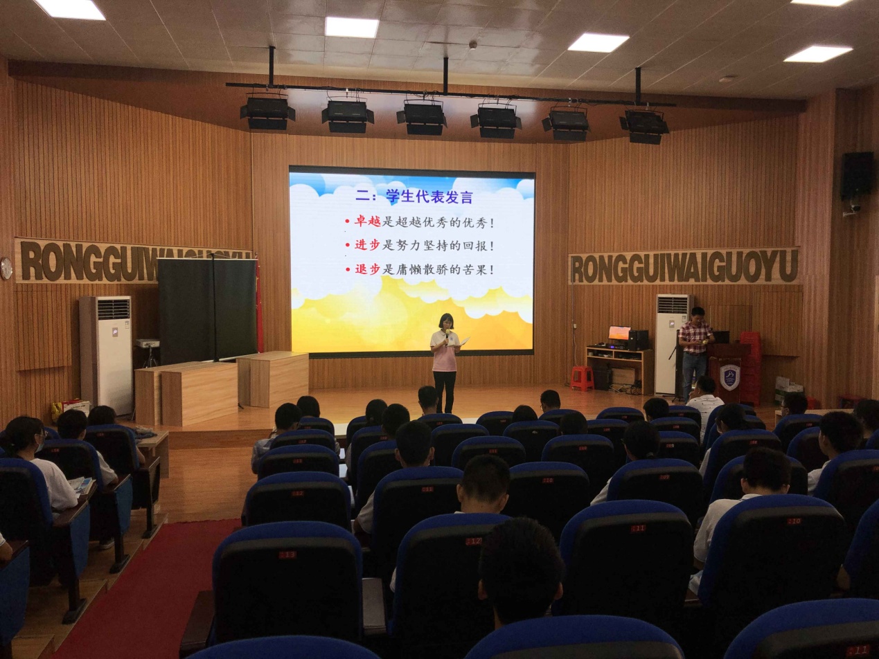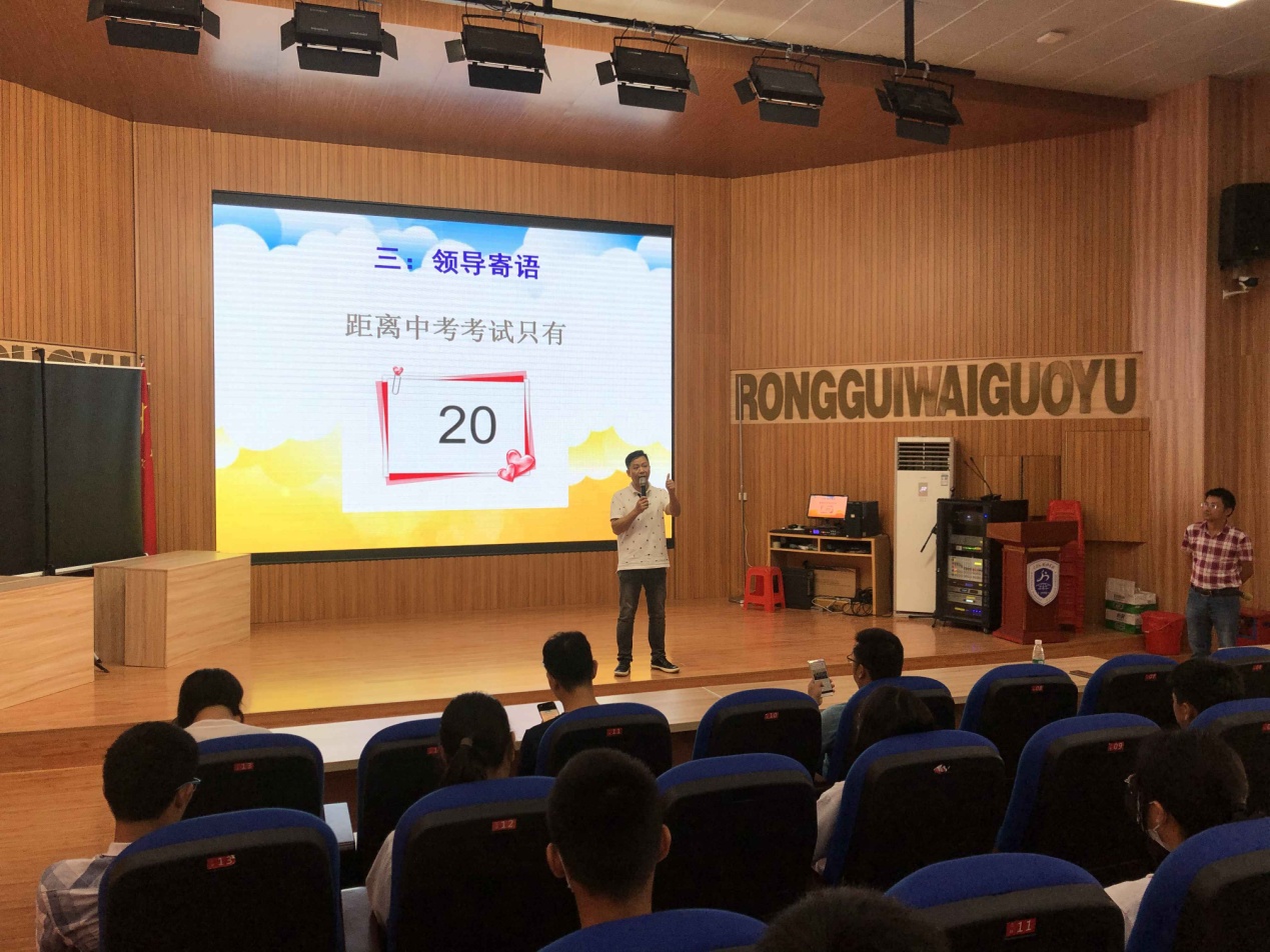 會議開始由學(xué)生代表發(fā)言,分享他們的學(xué)習(xí)經(jīng)驗,并送上他們的中考祝福,寄語容外學(xué)子必定旗開得勝,馬到功成!